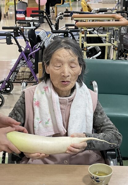 軽い口腔体操のあと、秋の食材