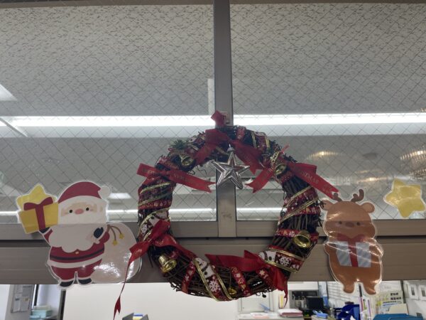 事務所受付にはクリスマスリースを😊💓