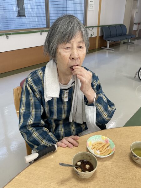お餅は喉に詰まりやすいため、代わりにお麩をのせてお配りしました♪