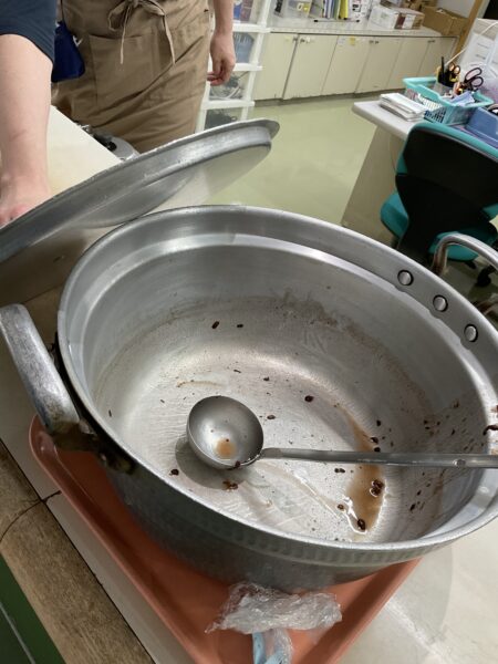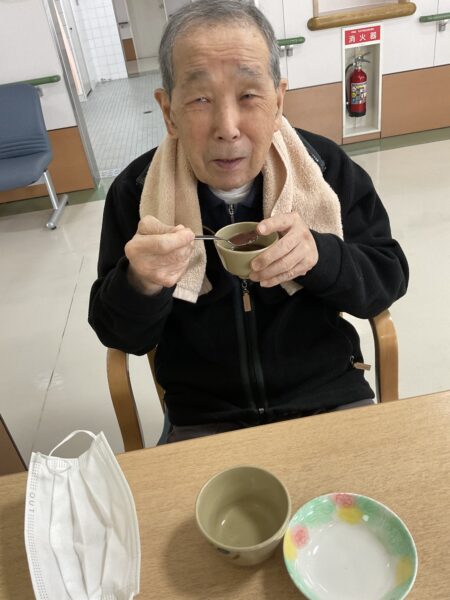 おやつの時間に、厨房の大鍋で作ってもらったぜんざいを皆さんに提供しました!